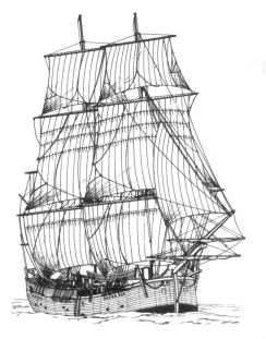 Rahsegeln, dagegen am hinteren Mast, dem Besan, zwei Gaffelsegel trugen.